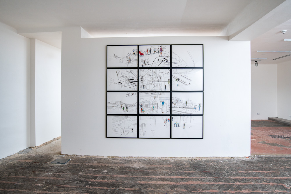 Václav Magid ve svých kresbách a videích mixuje hrany hájské architektury s křivkami chodovské a doplňuje je postavami lidí, kteří se většinou ubírají za nákupy. Svými slovy tak před námi načrtává obraz poklidné každodenní existence na pozadí postupující sebedestrukce civilizace. Globální kapitalismus či klimatická změna jsou příliš komplexní entity na to, abychom do nich mohli výrazně zasáhnout individuálním jednáním, a zároveň se každého z nás bezprostředně dotýkají. Jsou současně příliš vzdálené i příliš blízké. Den za dnem přispíváme svým drobným dílem k nespravedlivému ekonomickému uspořádání a environmentální krizi – pokaždé, když si kupujeme jídlo v supermarketu vykořisťujícím dodavatele a zaměstnance, když si vybíráme oblečení v nadnárodním řetězci zneužívajícím levnou pracovní sílu na druhém konci světa, když využíváme k dopravě prostředky poháněné fosilními palivy nebo když se stravujeme produkty živočišné výroby. Rozhřešení, které si přitom obvykle dáváme, říká „pro jednou se toho tolik nestane“: dobře víme o plastech zamořujících oceány, ale vodu v plastové láhvi na jedno použití si přesto koupíme. Cynismus tohoto „pro jednou“ není etickým selháním jednotlivce, ale má systémovou povahu – není projevem pohodlnosti či excesivně konzumního života, ale týká se zajišťování základních životních potřeb v rámci nastavených podmínek. Musíme to či ono udělat ještě jednou a pak znova a znova, abychom nepošli hlady, měli co na sebe a mohli se dostat z práce domů, přičemž šetrnější a udržitelnější varianty jsou pro většinu z nás nedostupným luxusem. Bez chování, v němž jsou ústupky natolik časté, až se pro nás staly samozřejmostí, by jistě nebyla možná ani tato výstava. Volba rozpoznatelných rámečků z Ikey to symbolizuje… Komplexní a nekontrolovatelné důsledky našeho každodenního chování se ukáží až jeho mnohonásobným zmnožením. To je ale možné uvidět jen z odstupu. Teprve při distancovaném pohledu zvnějšku se mohou různě vzdálené jednotky spojit do čitelného útvaru – podobně jako se různě vzdálené hvězdy pro pohled spojují do souhvězdí a galaxií.